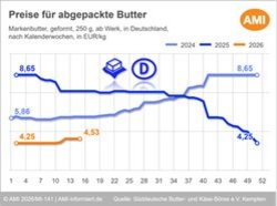 09.04.2026 (AMI) – Die Nachfrage nach abgepackter Butter bewegte sich über Ostern bei stabilen Preisen im saisonüblichen Rahmen.