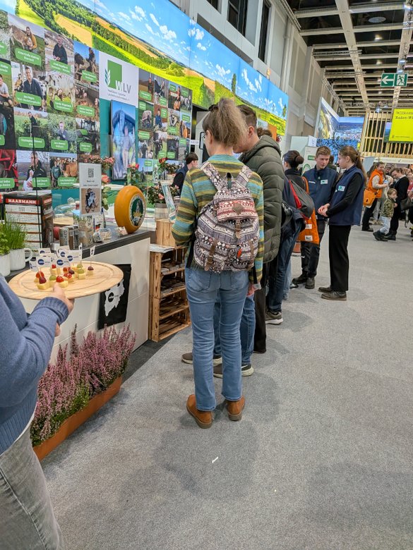 Ab Dienstag, 20.01. 2026 präsentierte sich die Kooperationsgemeinschaft #AusGutemGrundAusNRW – bestehend aus Landesvereinigung der Milchwirtschaft NRW e. V., mein-ei.nrw e.V., dem Westfälisch-Lippischen Landwirtschaftsverband e.V. und dem Rheinischen Landwirtschaftsverband als Mitglieder des Vereins Ernährung NRW und den beiden Landfrauenverbänden aus NRW am Stand. Mit ihren vier neuen Schautafeln, die auf Messen und Veranstaltungen im ländlichen Raum als Rollups und als fester Schautafel-Parcours auf der diesjährigen Landesgartenschau in Neuss eingesetzt werden, wurden Themen wie die Kreislaufwirtschaft, der Selbstversorgungsgrad regionaler Lebensmittel, die digitale Landwirtschaft auf dem Acker und die vielen Vorteile regional erzeugter Lebensmittel dem Verbraucher nähergebracht. Die Initiative wird vom Ministerium für Landwirtschaft und Verbraucherschutz NRW gefördert.