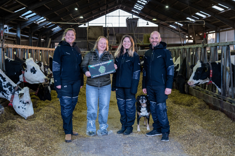 Beate Kronen hat für die Landesvereinigung der Milchwirtschaft NRW e. V. jetzt die Gewinner aus NRW auf ihren Höfen besucht und Glückwünsche und Gewinne überbracht.