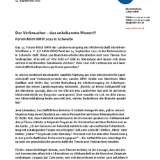 Das 15. Forum Milch NRW der Landesvereinigung der Milchwirtschaft Nordrhein-Westfalen e. V. (LV Milch NRW) fand am 14. September 2022 in der Rohrmeisterei in Schwerte statt. Rund 100 Branchenvertreter diskutierten dort zum Thema: Der Verbraucher. Was will er? Wie tickt er? Gibt es Stereotype und lassen sich diese einfach in bestimmten Schubladen stecken? Oder sind sich Verbraucher und landwirtschaftliche Branche sogar fremd geworden?