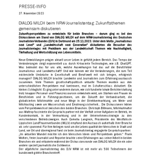 DIALOG MILCH ist ein gemeinsames Projekt der Landesvereinigung der Milchwirtschaft NRW e.V. und der Landesvereinigung Niedersachsen. Die Organisation und die Finanzierung der Podiumsdiskussion beim Journalistentag NRW erfolgte durch den Verein zur Förderung der Milchwirtschaft e.V.