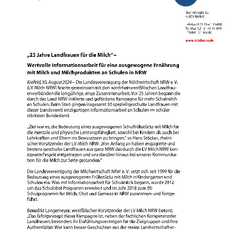 Die Landesvereinigung der Milchwirtschaft NRW e. V. dankt dem Land NRW für die kontinuierliche Förderung und die vertrauensvolle Zusammenarbeit sowie den Landfrauen für ihr großes Engagement zum Wohle der Kinder und somit der Zukunft unseres Landes!