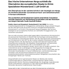 Aus dem Münsterland nach, wohin Du willst - mit 130 Jahren Expertise in den Bereichen Entwicklung, Produktion und Co-Packing von Milchmixgetränken und Eiskaffees - wird die Münsterland J. Lülf GmbH in Rosendahl den Anforderungen klassischer und moderner Ernährungstrends gerecht. Die Münsterland J. Lülf GmbH wurde zum 01.07.2025 von der Kerga Group übernommen, einer irischen Investmentgesellschaft für Fertiggerichte und Getränke, die durch die Übernahme Ihre Strategie für den Aufbau eines europäischen Portfolios weiterverfolgt. Neben der Spezialisierung auf „lange haltbar“ und „to go“ zeigt sich Geschäftsführer Manfred Fleige stets offen für neue Ideen, Kreationen und Innovationen. Das Unternehmen blickt optimistisch in die Zukunft: So sind derzeitige Bestrebungen, neben den aktuellen Verpackungen aus Glas und Aluminium, weitere umweltfreundliche, wirtschaftliche und kundenfreundliche Packungen zu entwickeln.