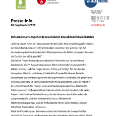 Zahlreiche Fragen hatten die journalistischen Volontäre aus verschiedenen Redaktionen am 27. August 2020 auf dem Milchviehbetrieb Schulte-Althoff in Haltern am See. Und ihre Fragen kamen „Schlag auf Schlag“. Mit den beiden Gastgebern Matthias und Georg Schulte-Althoff sowie Milchbauer Benedikt Langemeyer aus Mettingen sprachen die angehenden Journalisten, die gerade eine Volontärausbildung im Journalistenzentrum Herne absolvieren, über die Arbeit in der Landwirtschaft. Mit Humor, vielen anschaulichen Vergleichen, detaillierten Erklärungen und profundem Wissen beantworteten die drei Landwirte die vielen Fragen. Und mit einer Betriebsführung, die die Gäste von den Kälbern über die Jungviehaufzucht und den Melkstand bis hin zur Molkerei mit Milchverpackungsanlage und der Hoftankstelle führte, stellte Matthias Schulte-Althoff die Arbeit seiner Familie vor.