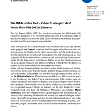 Vom Ministerium für Landwirtschaft und Verbraucherschutz des Landes NRW ging Dr. Jan Dietzel in seinen Ausführungen darauf ein, wie die Landesregierung die Milchbranche dabei unterstützt, auf die Anforde-rungen des Marktes und der Gesellschaft zu reagieren. Die Milcherzeu-gung sei eine tragende Säule der heimischen Landwirtschaft und wichti-ge Einkommensquelle für die Bäuerinnen und Bauern. Daher sei es der Landesregierung ein besonderes Anliegen, die Milchviehhaltung in Nordrhein-Westfalen zu sichern und ihr eine verlässliche Perspektive zu bieten.