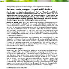 Eine Gruppe von Experten beleuchtete die Rolle und Zukunft von Milch als Lebensmittel bei einem Hintergrundgespräch von DIALOG MILCH. Ein sich wandelndes Marktumfeld und zum Teil skandalisierende Diskussionen erschweren die gesellschaftliche Einordnung. Milch verdient differenzierte Wertung und Kommunikation als wertvolles Nahrungsmittel, die einen wesentlichen Beitrag zur gesunden Ernährung leistet, so die Runde. Krefeld, 4. Januar 2023: „Milch wird wegen ihrer vielfältigen physiologischen Vorteile als Lebensmittel, ‚medical food‘ und ‚easy to eat and drink product‘ auch zukünftig unverzichtbar bleiben“, zeigte sich Professor Dr. Gunther Hirschfelder vom Lehrstuhl für Vergleichende Kulturwissenschaft der Universität Regensburg überzeugt. „Sie ist seit 15.000 Jahren als Superfood fest in das menschliche Bewusstsein eingraviert, hat maßgeblich zu Wachstum und Entwicklung des menschlichen Gehirns beigetragen“, erklärte er bei dem Hintergrundgespräch zum Thema „Zwischen Versorgungssicherheit und ‚First-world-problems‘: Herausforderungen und Perspektiven für die Milch“. Mit dem Wissenschaftsjournalisten, Hochschullehrer und Autor Professor Dr. Jan Grossarth, mit Joachim Hartung vom Ministerium für Landwirtschaft und Verbraucherschutz des Landes NRW und mit Benedikt Langemeyer, Geschäftsführender Vorstand der Landesvereinigung der Milchwirtschaft NRW und Milchkuhhalter, diskutierte Prof. Hirschfelder über die gesellschaftliche Wahrnehmung von Tierhaltung, Milchkuhhaltung und Milch als Lebensmittel.