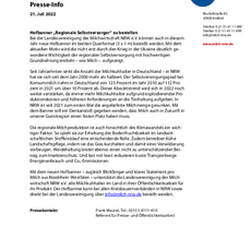 Bei der Landesvereinigung der Milchwirtschaft NRW e.V. können auch in diesem Jahr neue Hofbanner im breiten Querformat (3 x 1 m) bestellt werden. Mit dem aktuellen Motiv wird die nicht erst durch den Krieg in der Ukraine deutlich gewordene Wichtigkeit der regionalen Selbstversorgung mit hochwertigen Grundnahrungsmitteln – wie Milch – aufgezeigt.