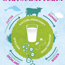Mit dem Thema „Kreislaufwirtschaft“ will die Landesvereinigung der Milchwirtschaft NRW e.V. dem einseitigen Bild der „Kuh als Klimakiller“ entgegenwirken und den Landwirten ein einfaches Mittel zur Darstellung der positiven Aspekte der Milchkuhhaltung anbieten. Denn die Kreislaufwirtschaft ist hinsichtlich von Nachhaltigkeit und Klimawandel ein wichtiger Faktor: Ressourcen und Umwelt werden geschont. So spielt sie zur Erhaltung der Bodenfruchtbarkeit im landwirtschaftlichen Stoffkreislauf eine entscheidende Rolle und leistet einen nicht zu unterschätzenden Beitrag zur CO2-Bindung im Boden. Auch für die Biodiversität und den Insektenschutz hat die Milchkuhhaltung positive Wirkungen, denn Grünland trägt zur biologischen Vielfalt bei.