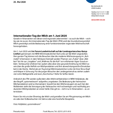 Anlässlich des ITM werden außerdem allen Milchviehbetrieben in NRW Hofplakate, die den Begriff „systemrelevant“ aufgreifen, angeboten. Die Bedeutung der heimischen Milchproduktion wird so thematisiert. Sowohl bei den Milcherzeugern als auch bei den Molkereien steht die Versorgung der Verbraucher mit hochwertigen und nachhaltig produzierten Milchprodukten an erster Stelle. Dies gilt es – nicht nur in Krisenzeiten – zu unterstützen.