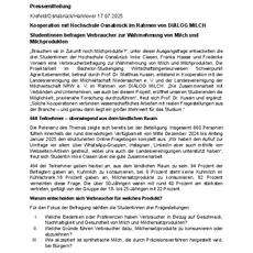 „Die Projektarbeit der Studentinnen hat unseren Eindruck bestätigt, dass Milch und Milchprodukte weiterhin einen sehr großen Zuspruch genießen. Ersatzprodukte ersetzen sie meistens nicht, sondern finden parallel ihren Platz im Kühlschrank“, betont Frank Maurer von der Landesvereinigung der Milchwirtschaft NRW e. V. und Christine Licher von der Landesvereinigung Niedersachsen ergänzt: „Auch zeigt die Befragung, dass die Bedeutung der Milch als regional erzeugtes Lebensmittel für die ländlichen Regionen von Verbrauchern durchaus gesehen wird.“