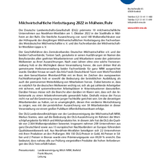 Die Deutsche Landwirtschafts-Gesellschaft (DLG) prämierte 19 milchwirtschaftliche Unternehmen aus Nordrhein-Westfalen am 1. Oktober 2022 in der Stadthalle in Mülheim an der Ruhr . Die feierliche Auszeichnung von rund 180 Molkereifachleuten war der Höhepunkt der diesjährigen Milchwirtschaftlichen Herbsttagung des Fachverban-