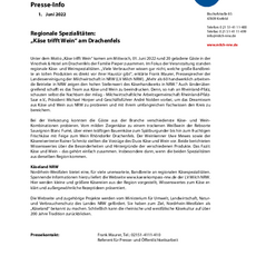 Unter dem Motto „Käse trifft Wein“ kamen am Mittwoch, 01. Juni 2022 rund 20 geladene Gäste in der Vinothek & Hotel am Drachenfels der Familie Pieper zusammen. Im Fokus der Veranstaltung standen regionale Käse- und Weinspezialitäten. „Viele Verbraucher wissen gar nicht, welche große Bandbreite an tollen Produkten es direkt vor ihrer Haustür gibt“, erklärte Frank Maurer, Pressesprecher der Landesvereinigung der Milchwirtschaft in NRW (LV Milch NRW). „Mehr als 60 handwerklich arbeitende Betriebe in NRW zeigen den hohen Stellenwert des Käserhandwerks in NRW.“ Auch länderübergreifend schafft es das Team aus Käse und Wein zu beeindrucken. Denn, so nah an Rheinland-Pfalz, schauten selbst die Nachbarn der milag - Milchwirtschaftliche Arbeitsgemeinschaft Rheinland-Pfalz-Saar e.V., Präsident Michael Horper und Geschäftsführer André Nolden vorbei, um das Dreamteam aus Käse und Wein aus NRW zu probieren und mit ihrem umfangreichen Fachwissen den Kreis zu bereichern.
