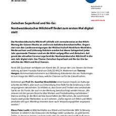 Der Nordwestdeutsche Milchtreff schließt sich normalerweise an den Milch-Montag der Grünen Woche an und ist ein beliebtes Branchentreffen. Organisiert von den Landesvereinigungen der Milchwirtschaft Nordrhein-Westfalen, Niedersachsen und Schleswig-Holstein werden bei dieser Gelegenheit jedes Jahr spannende Themen rund um die Milch aufgegriffen und diskutiert. Aufgrund der aktuellen Corona-Lage fand der Nordwestdeutsche-Milchtreff in diesem Jahr digital statt. Das Thema: Zwischen Superfood und No-Go: Die Geschichte der Milch und ihre Chancen.